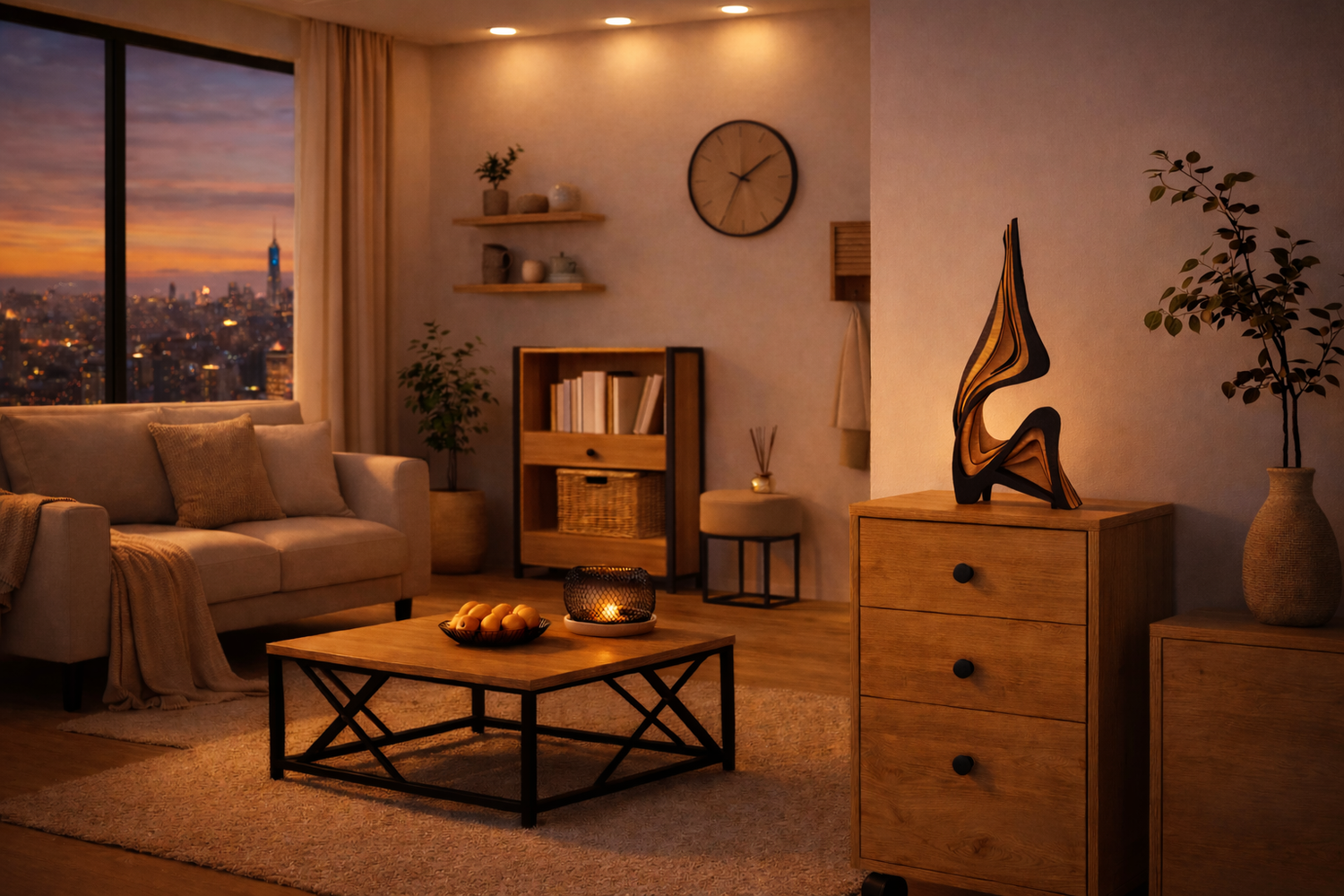 De Blackwood Luxe stijl brengt de verfijning van zwart hout, diepe bruintinten en moderne metalen samen tot een hamonieus geheel. Het zorgt voor warme moderne basis die perfect past in elk huis.